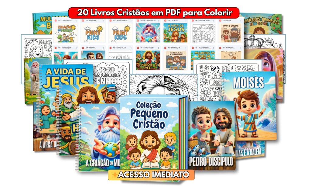 É uma coleção completa com 20 Livros Cristãos em PDF prontos para Imprimir quantas vezes quiser e Colorir.